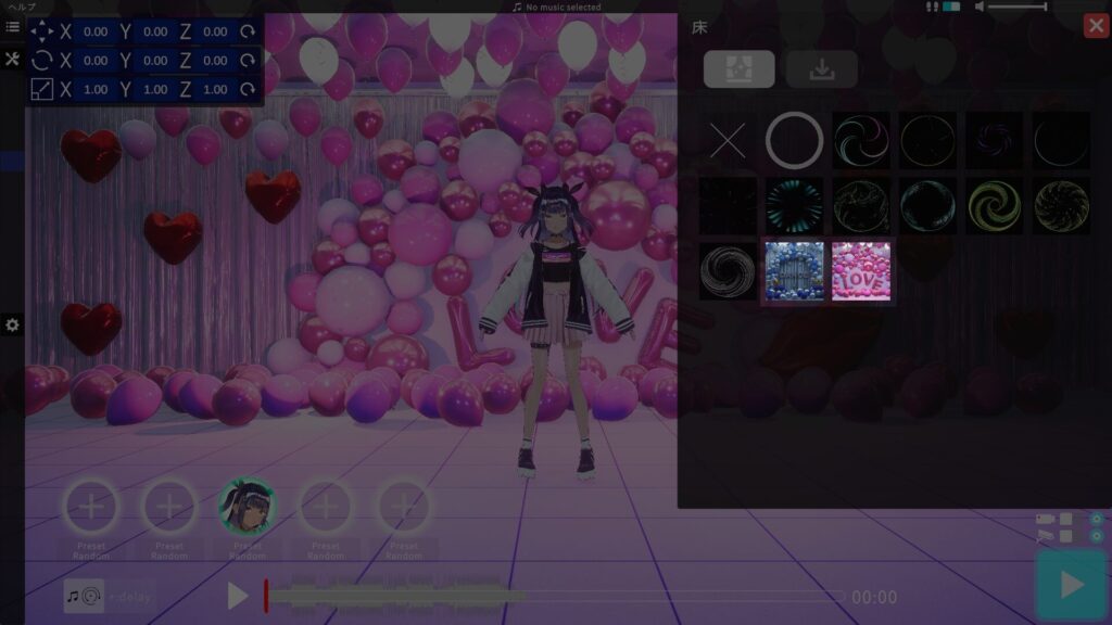 ライトが対応しているプリセット(ステージ>床)は以下の2つになります。