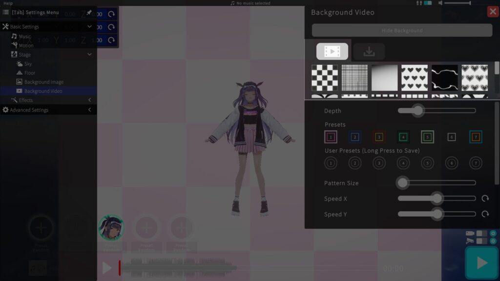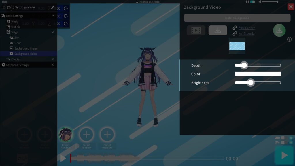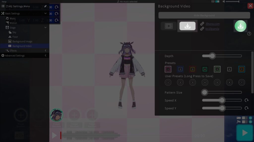 Choose a dance motion from presets or import your own data.
